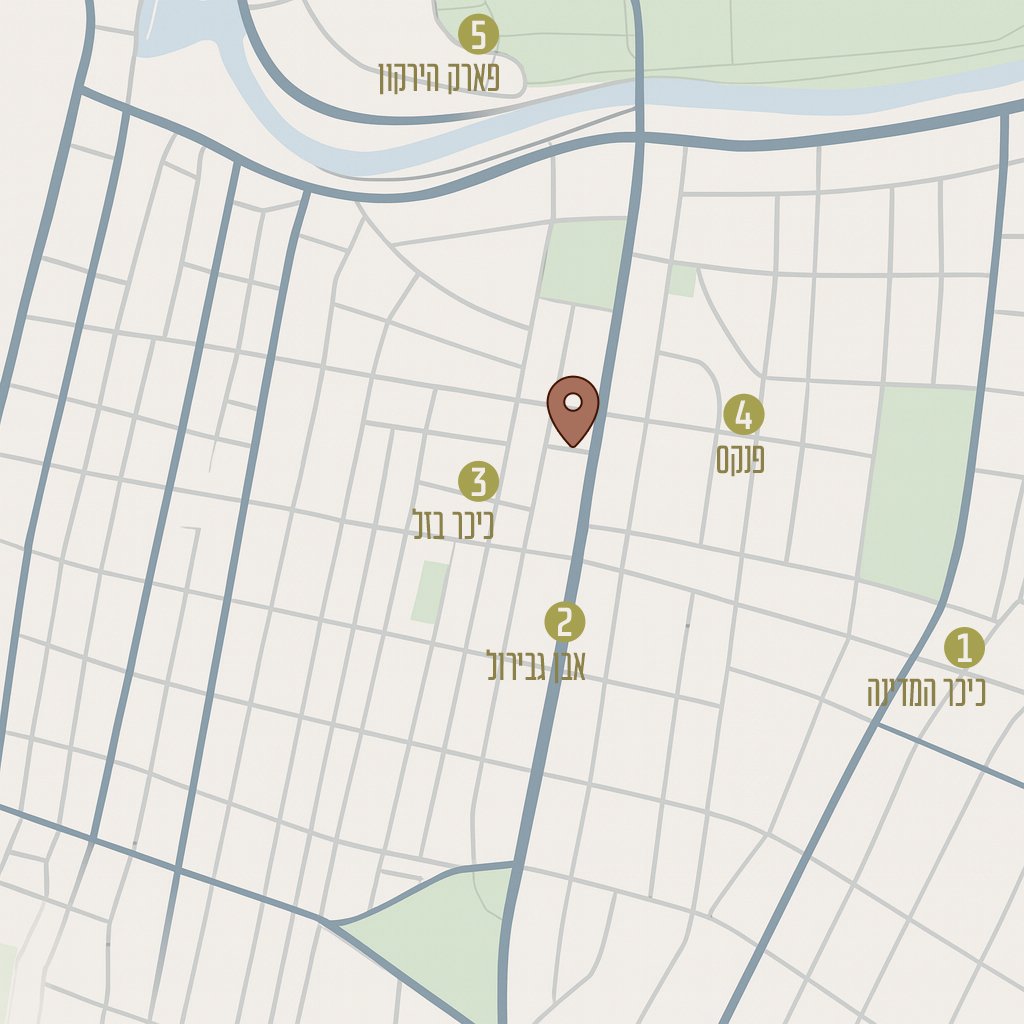 מיקומו האסטרטגי בסמוך לרחוב אבן גבירול וכיכר בזל, מאפשר לכם להנות מכל מה שתל אביב מציעה במרחק הליכה קצר: בתי קפה, מסעדות שף, חנויות בוטיק, מרכזי תרבות ואמנות, פארקים ירוקים ומוסדות חינוך מהמובילים בעיר. השכונה משלבת אווירה יוקרתית עם חיי קהילה אינטימים, ומציעה איכות חיים גבוהה בלב הסצנה העירונית התוססת.